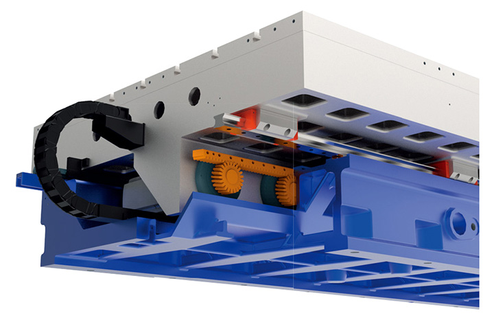 X,Y軸采用帶有主從消隙機(jī)構(gòu)的齒輪齒條傳動(dòng)。
