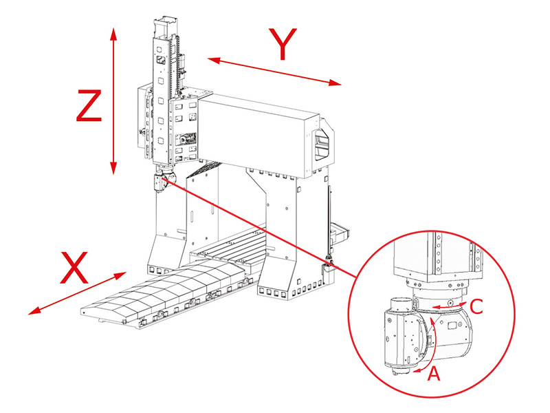 • 機(jī)床配置五軸連續(xù)控制(X、Y、Z、C、A)